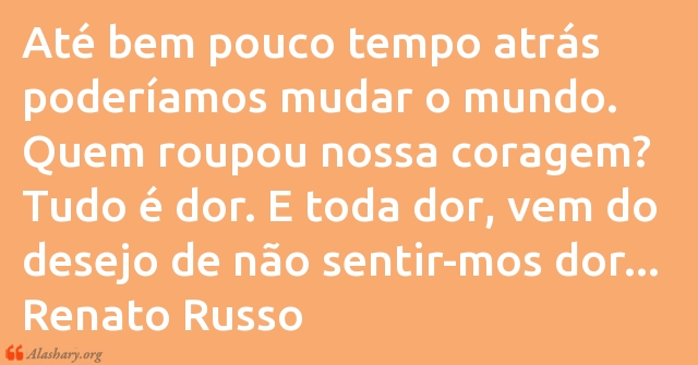Até bem pouco tempo atrás poderíamos mudar o mundo. Quem roupou nossa coragem? Tudo é dor. E toda dor, vem do desejo de não sentir-mos dor... Renato Russo
