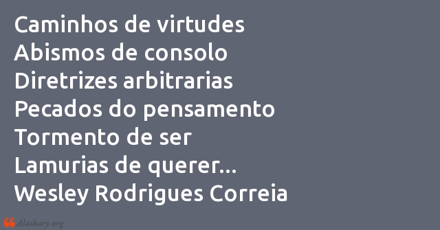 Caminhos de virtudes Abismos de consolo Diretrizes arbitrarias Pecados do pensamento Tormento de ser Lamurias de querer... Wesley Rodrigues Correia