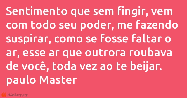 Sentimento que sem fingir, vem com todo seu poder, me fazendo suspirar, como se fosse faltar o ar, esse ar que outrora roubava de você, toda vez ao te beijar.
