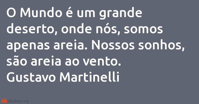 O Mundo é um grande deserto, onde nós, somos apenas areia. Nossos sonhos, são areia ao vento. Gustavo Martinelli