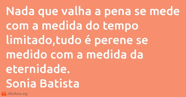 Nada que valha a pena se mede com a medida do tempo limitado,tudo é perene se medido com a medida da eternidade. Sonia Batista
