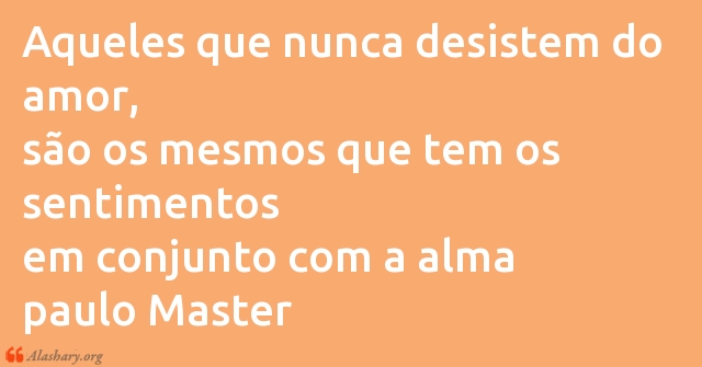 Aqueles que nunca desistem do amor, são os mesmos que tem os sentimentos em conjunto com a alma paulo Master