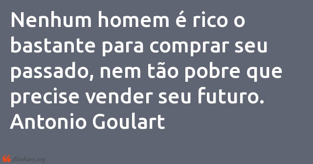 Nenhum homem é rico o bastante para comprar seu passado, nem tão pobre que precise vender seu futuro.