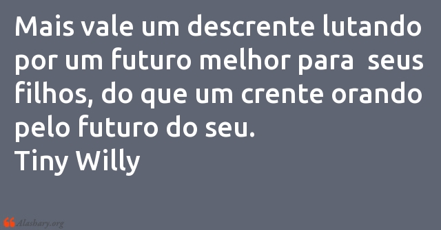 Mais vale um descrente lutando por um futuro melhor para seus filhos, do que um crente orando pelo futuro do seu. Tiny Willy