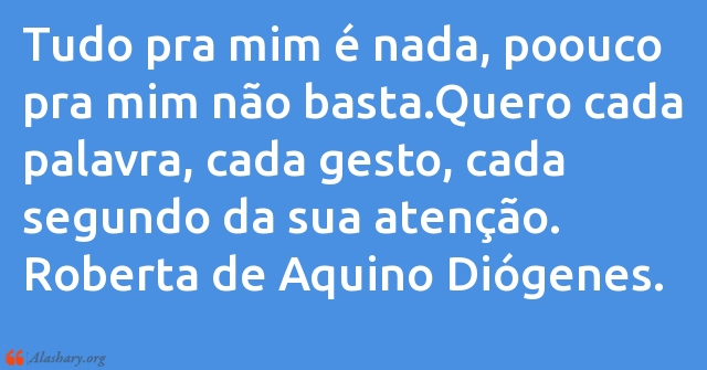 Tudo pra mim é nada, poouco pra mim não basta.Quero cada palavra, cada gesto, cada segundo da sua atenção. Roberta de Aquino Diógenes.