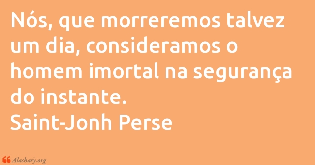 Nós, que morreremos talvez um dia, consideramos o homem imortal na segurança do instante. Saint-Jonh Perse