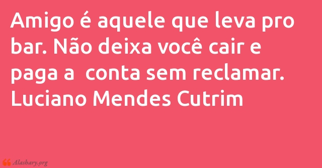 Amigo é aquele que leva pro bar. Não deixa você cair e paga a conta sem reclamar. Luciano Mendes Cutrim