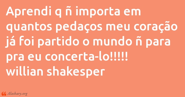 Aprendi q ñ importa em quantos pedaços meu coração já foi partido o mundo ñ para pra eu concerta-lo!!!!!