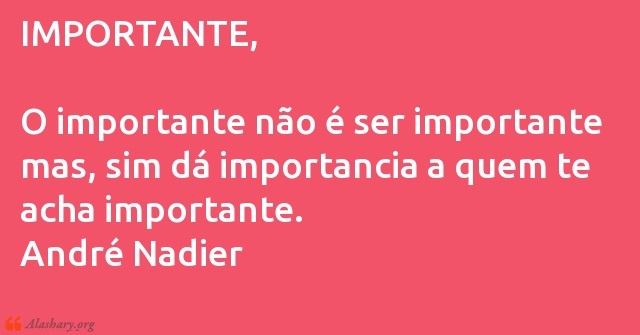 IMPORTANTE, O importante não é ser importante mas, sim dá importancia a quem te acha importante. André Nadier
