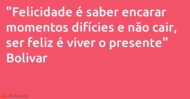 "Felicidade é saber encarar momentos difícies e não cair, ser feliz é viver o presente"