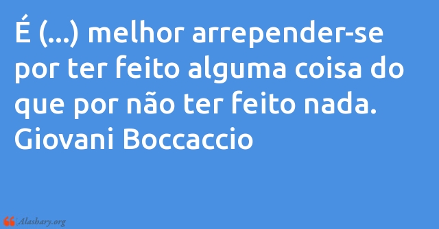 É (...) melhor arrepender-se por ter feito alguma coisa do que por não ter feito nada. Giovani Boccaccio