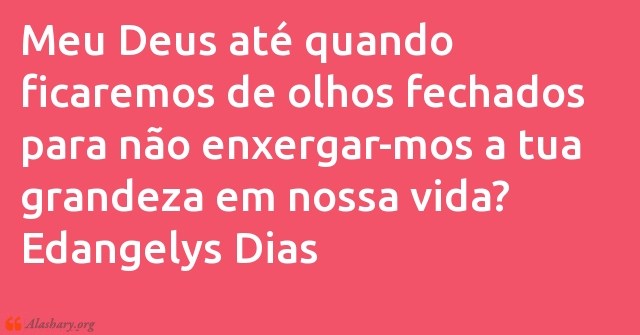 Meu Deus até quando ficaremos de olhos fechados para não enxergar-mos a tua grandeza em nossa vida? Edangelys Dias