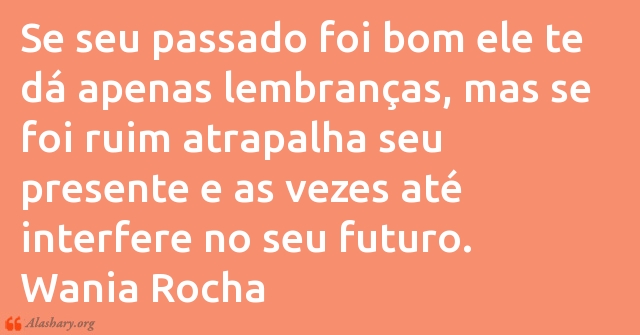 Se seu passado foi bom ele te dá apenas lembranças, mas se foi ruim atrapalha seu presente e as vezes até interfere no seu futuro.