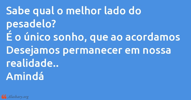 Sabe qual o melhor lado do pesadelo? É o único sonho, que ao acordamos Desejamos permanecer em nossa realidade.. Amindá