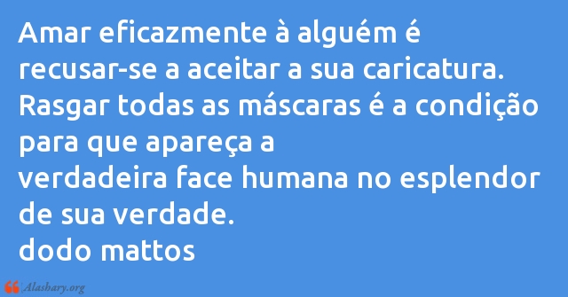Amar eficazmente à alguém é recusar-se a aceitar a sua caricatura. Rasgar todas as máscaras é a condição para que apareça a
