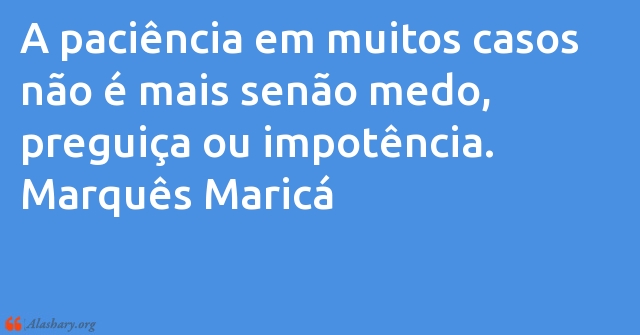 A paciência em muitos casos não é mais senão medo, preguiça ou impotência. Marquês Maricá