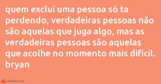 quem exclui uma pessoa só ta perdendo, verdadeiras pessoas não são aquelas que juga algo, mas as verdadeiras pessoas são aquelas que acolhe no momento mais dificil.