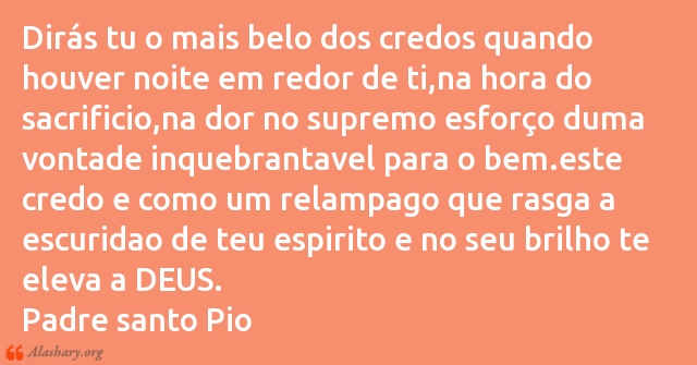 Dirás tu o mais belo dos credos quando houver noite em redor de ti,na hora do sacrificio,na dor no supremo esforço duma vontade inquebrantavel para o bem.este credo e como um relampago que rasga a escuridao de teu espirito e no seu brilho te eleva a DEUS.