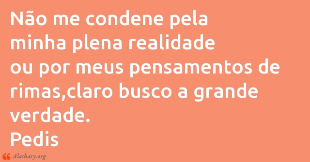 Não me condene pela minha plena realidade ou por meus pensamentos de rimas,claro busco a grande verdade. Pedis