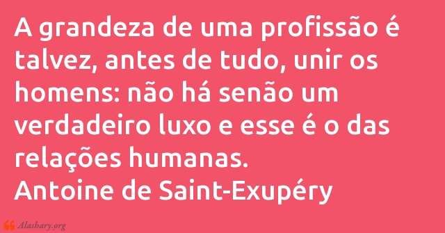 A grandeza de uma profissão é talvez, antes de tudo, unir os homens: não há senão um verdadeiro luxo e esse é o das relações humanas.