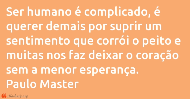 Ser humano é complicado, é querer demais por suprir um sentimento que corrói o peito e muitas nos faz deixar o coração sem a menor esperança.