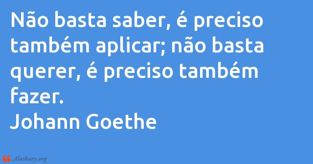 Não basta saber, é preciso também aplicar; não basta querer, é preciso também fazer.