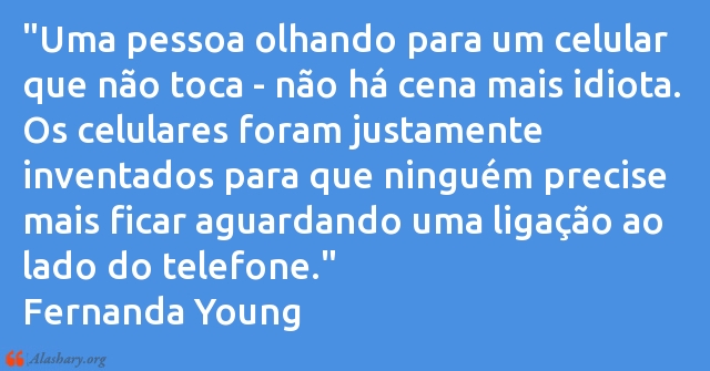 "Uma pessoa olhando para um celular que não toca - não há cena mais idiota. Os celulares foram justamente inventados para que ninguém precise mais ficar aguardando uma ligação ao lado do telefone." Fernanda Young