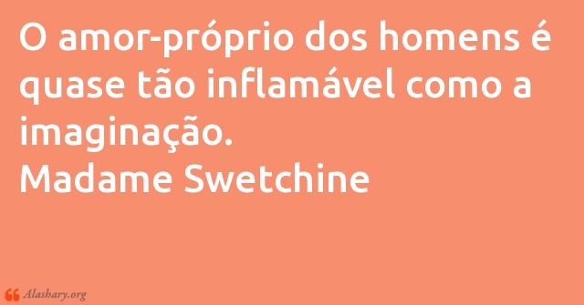 O amor-próprio dos homens é quase tão inflamável como a imaginação. Madame Swetchine