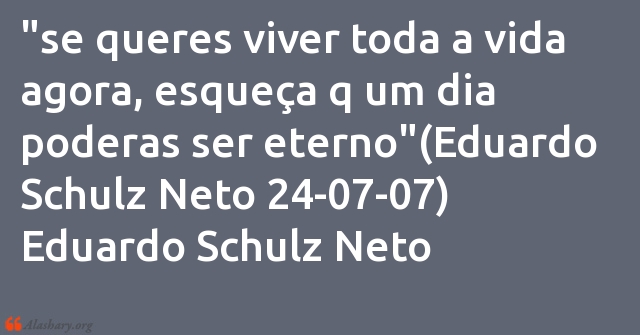 "se queres viver toda a vida agora, esqueça q um dia poderas ser eterno"(Eduardo Schulz Neto 24-07-07) Eduardo Schulz Neto