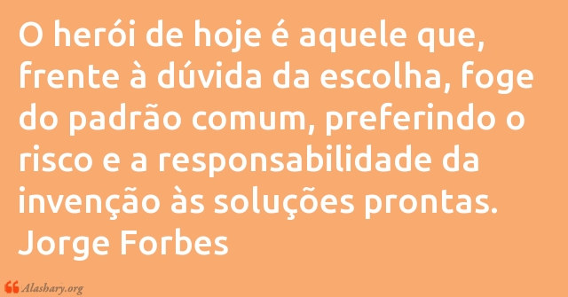 O herói de hoje é aquele que, frente à dúvida da escolha, foge do padrão comum, preferindo o risco e a responsabilidade da invenção às soluções prontas. Jorge Forbes
