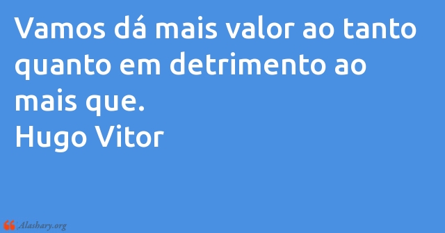 Vamos dá mais valor ao tanto quanto em detrimento ao mais que. Hugo Vitor
