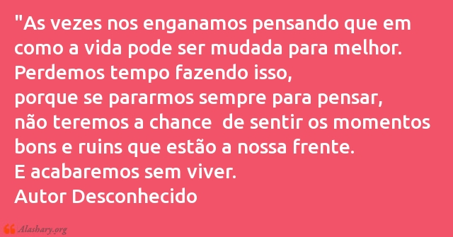 "As vezes nos enganamos pensando que em como a vida pode ser mudada para melhor.