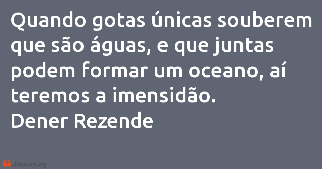 Quando gotas únicas souberem que são águas, e que juntas podem formar um oceano, aí teremos a imensidão. Dener Rezende