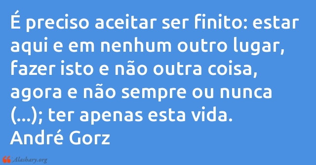 É preciso aceitar ser finito: estar aqui e em nenhum outro lugar, fazer isto e não outra coisa, agora e não sempre ou nunca (...); ter apenas esta vida. André Gorz