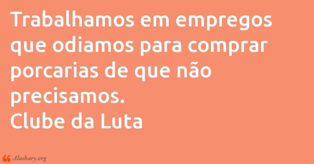 Trabalhamos em empregos que odiamos para comprar porcarias de que não precisamos. Clube da Luta
