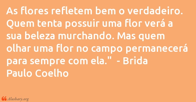 As flores refletem bem o verdadeiro. Quem tenta possuir uma flor verá a sua beleza murchando. Mas quem olhar uma flor no campo permanecerá para sempre com ela." - Brida