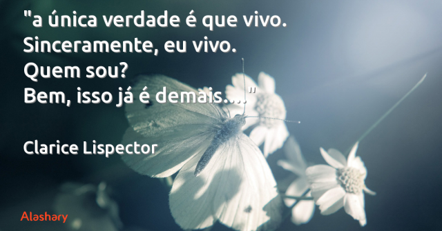 "a única verdade é que vivo. Sinceramente, eu vivo. Quem sou? Bem, isso já é demais...." Clarice Lispector