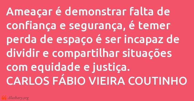 Ameaçar é demonstrar falta de confiança e segurança, é temer perda de espaço é ser incapaz de dividir e compartilhar situações com equidade e justiça.