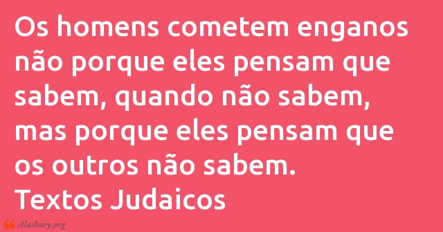 Os homens cometem enganos não porque eles pensam que sabem, quando não sabem, mas porque eles pensam que os outros não sabem. Textos Judaicos