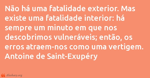 Não há uma fatalidade exterior. Mas existe uma fatalidade interior: há sempre um minuto em que nos descobrimos vulneráveis; então, os erros atraem-nos como uma vertigem. Antoine de Saint-Exupéry