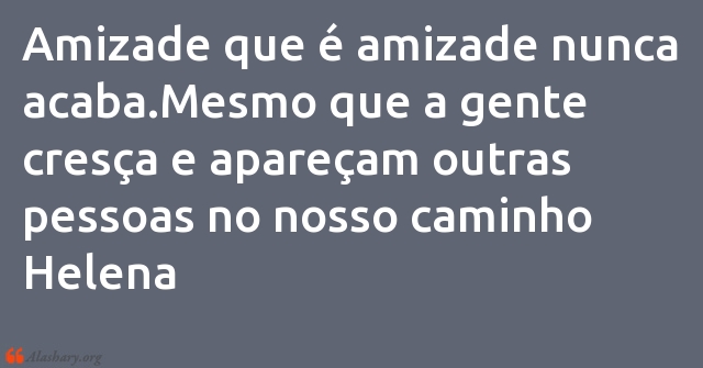 Amizade que é amizade nunca acaba.Mesmo que a gente cresça e apareçam outras pessoas no nosso caminho