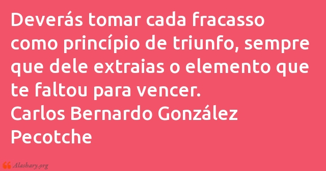 Deverás tomar cada fracasso como princípio de triunfo, sempre que dele extraias o elemento que te faltou para vencer. Carlos Bernardo González Pecotche