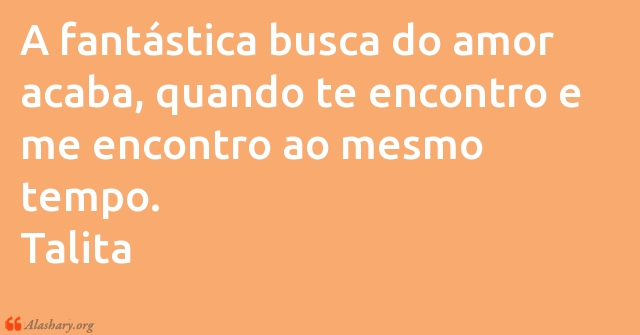 A fantástica busca do amor acaba, quando te encontro e me encontro ao mesmo tempo.