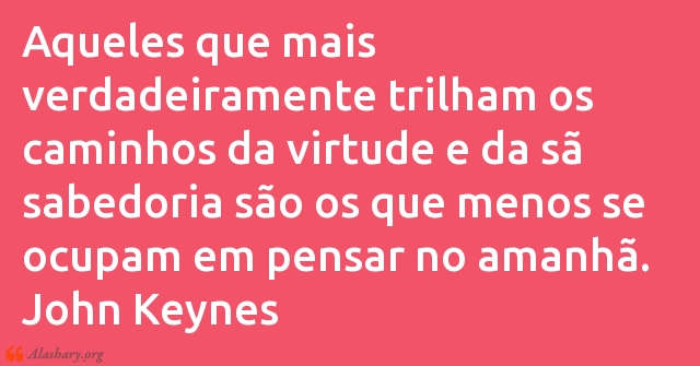 Aqueles que mais verdadeiramente trilham os caminhos da virtude e da sã sabedoria são os que menos se ocupam em pensar no amanhã.