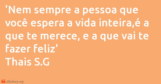 'Nem sempre a pessoa que você espera a vida inteira,é a que te merece, e a que vai te fazer feliz' Thais S.G