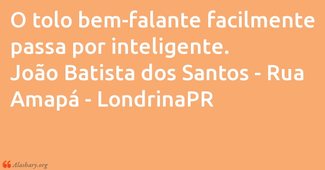 O tolo bem-falante facilmente passa por inteligente. João Batista dos Santos - Rua Amapá - LondrinaPR