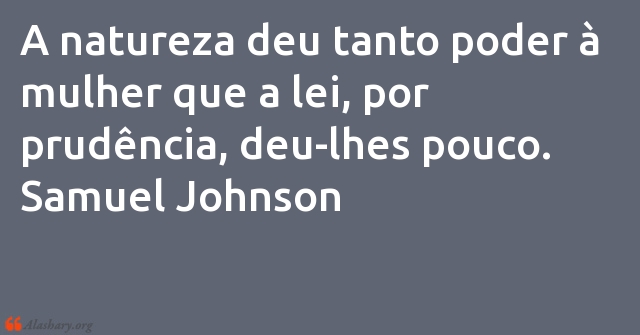 A natureza deu tanto poder à mulher que a lei, por prudência, deu-lhes pouco. Samuel Johnson