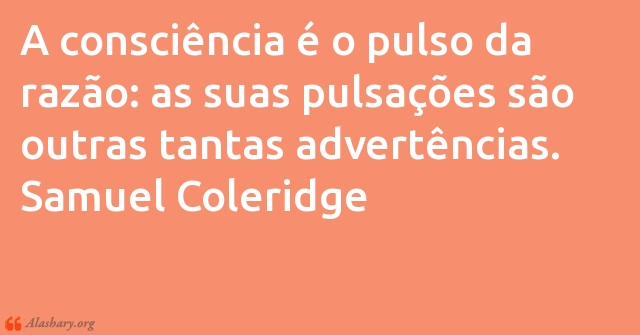 A consciência é o pulso da razão: as suas pulsações são outras tantas advertências. Samuel Coleridge