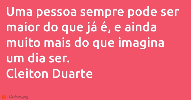 Uma pessoa sempre pode ser maior do que já é, e ainda muito mais do que imagina um dia ser. Cleiton Duarte
