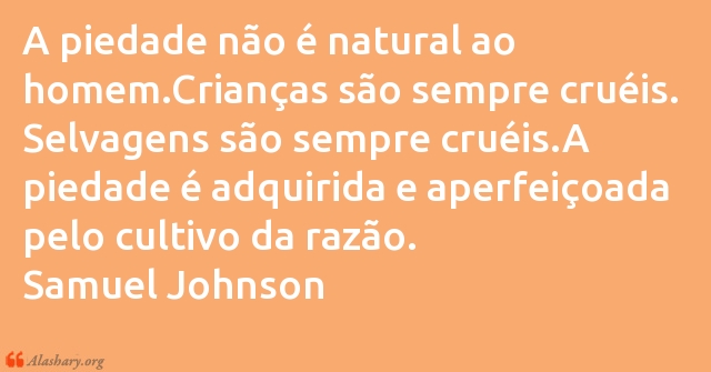 A piedade não é natural ao homem.Crianças são sempre cruéis. Selvagens são sempre cruéis.A piedade é adquirida e aperfeiçoada pelo cultivo da razão.